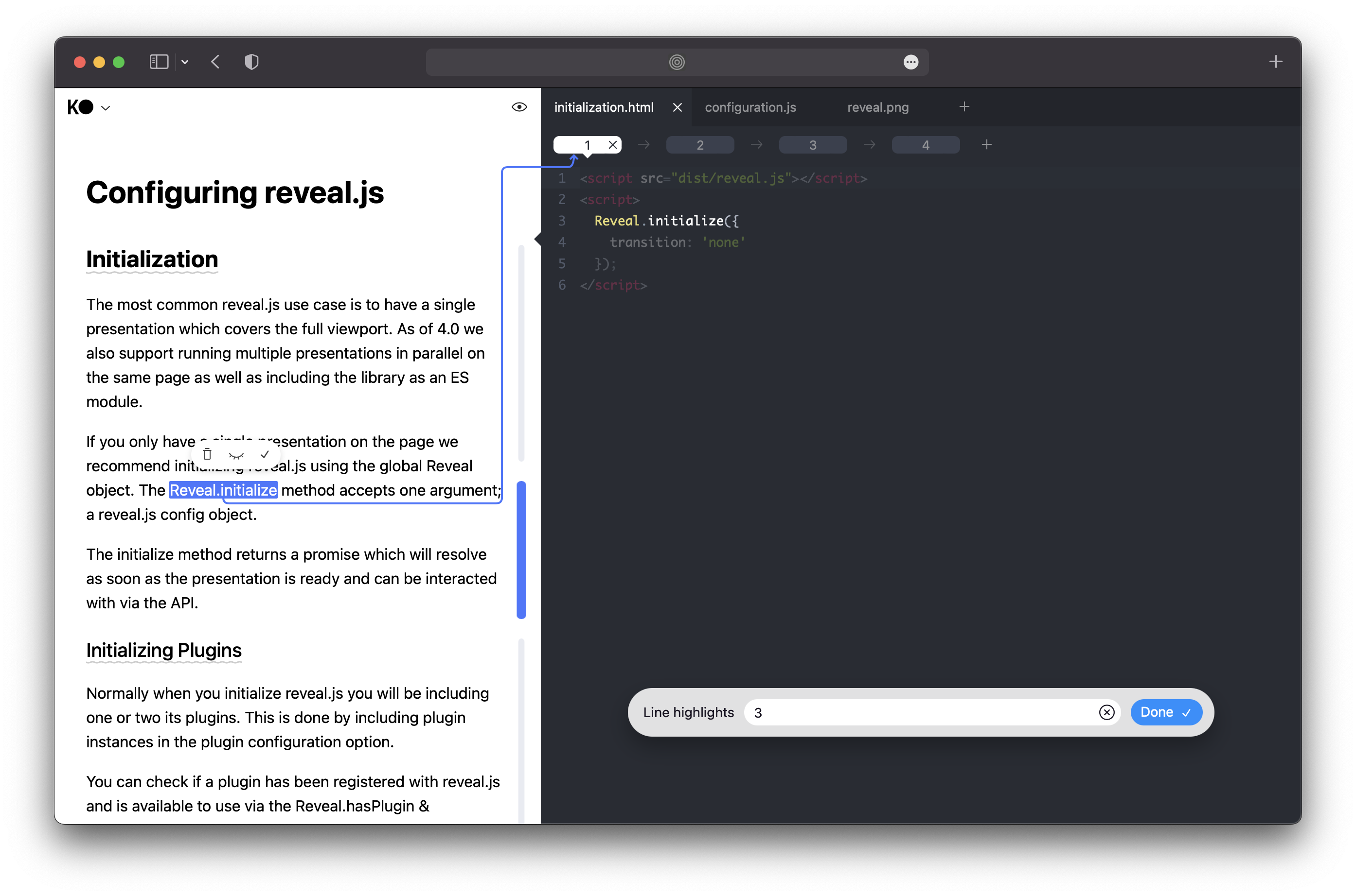 Kodemo is an open source tool for creating more engaging code tutorials, walkthroughs and documentation. Documents can be created and shared in the cloud on kodemo.com, or you can integrate it with your own app using the @kodemo/player package.